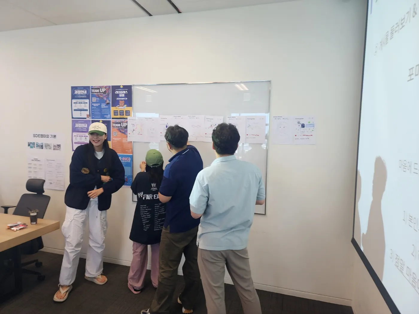 각 구성원이 다른 팀에 요청할 사항이나 도움을 받을 부분을 적어가며, 협업의 구체적인 방법을 탐색하는 시간을 가졌습니다. 이 과정에서 우리가 서로 어떻게 연결되어 있는지를 깨닫고 자연스럽게 협업의 계기가 미련되었어요.