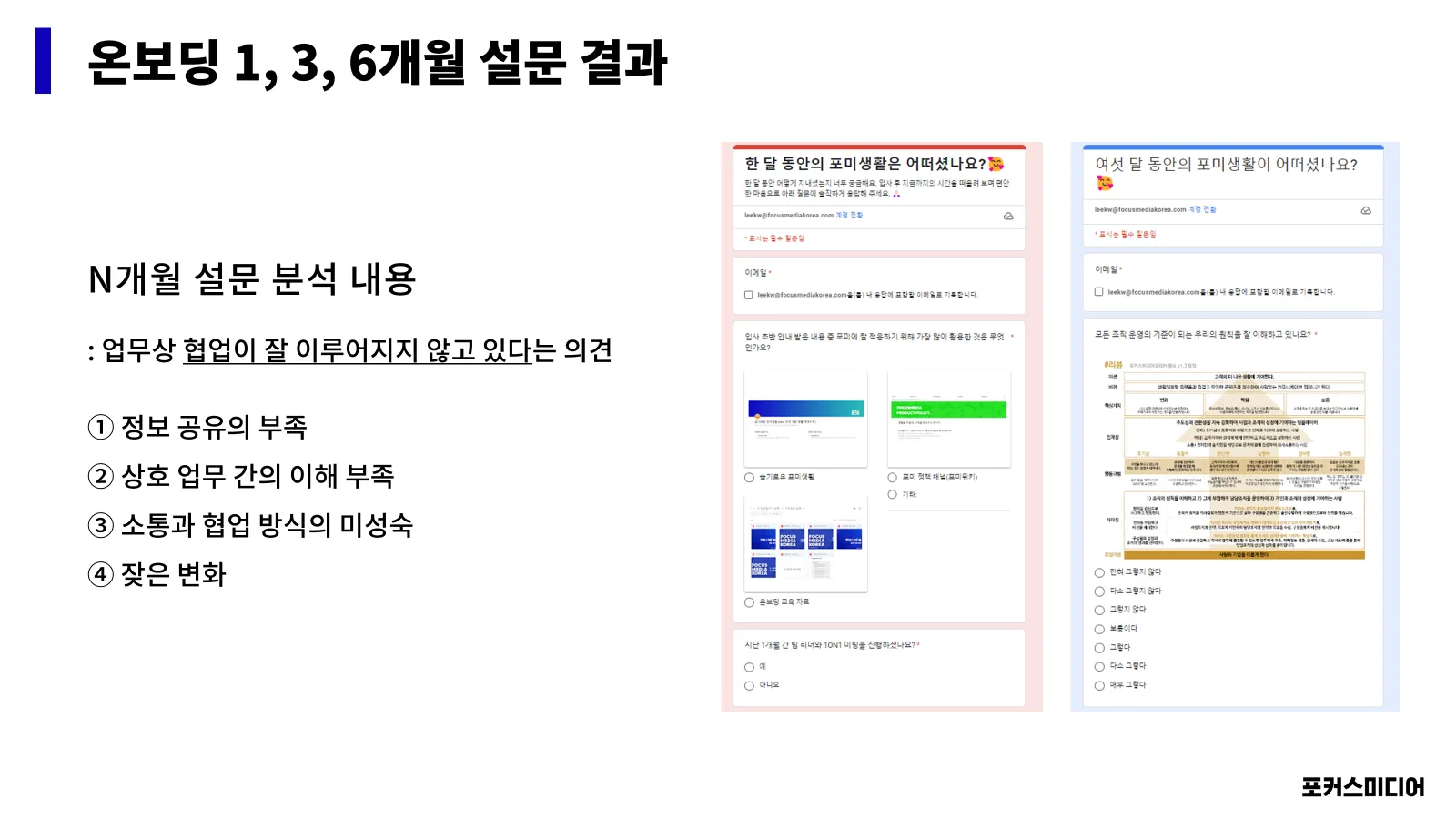 이 활기찬 웃음소리는 바로 2024년 상반기 포커스미디어에 입사한 신규 구성원들을 대상으로 진행된 포미(~ING) 세션에서 나왔는데요, 오전부터 유쾌했던 이유를 함께 읽으며 확인해보세요 :)