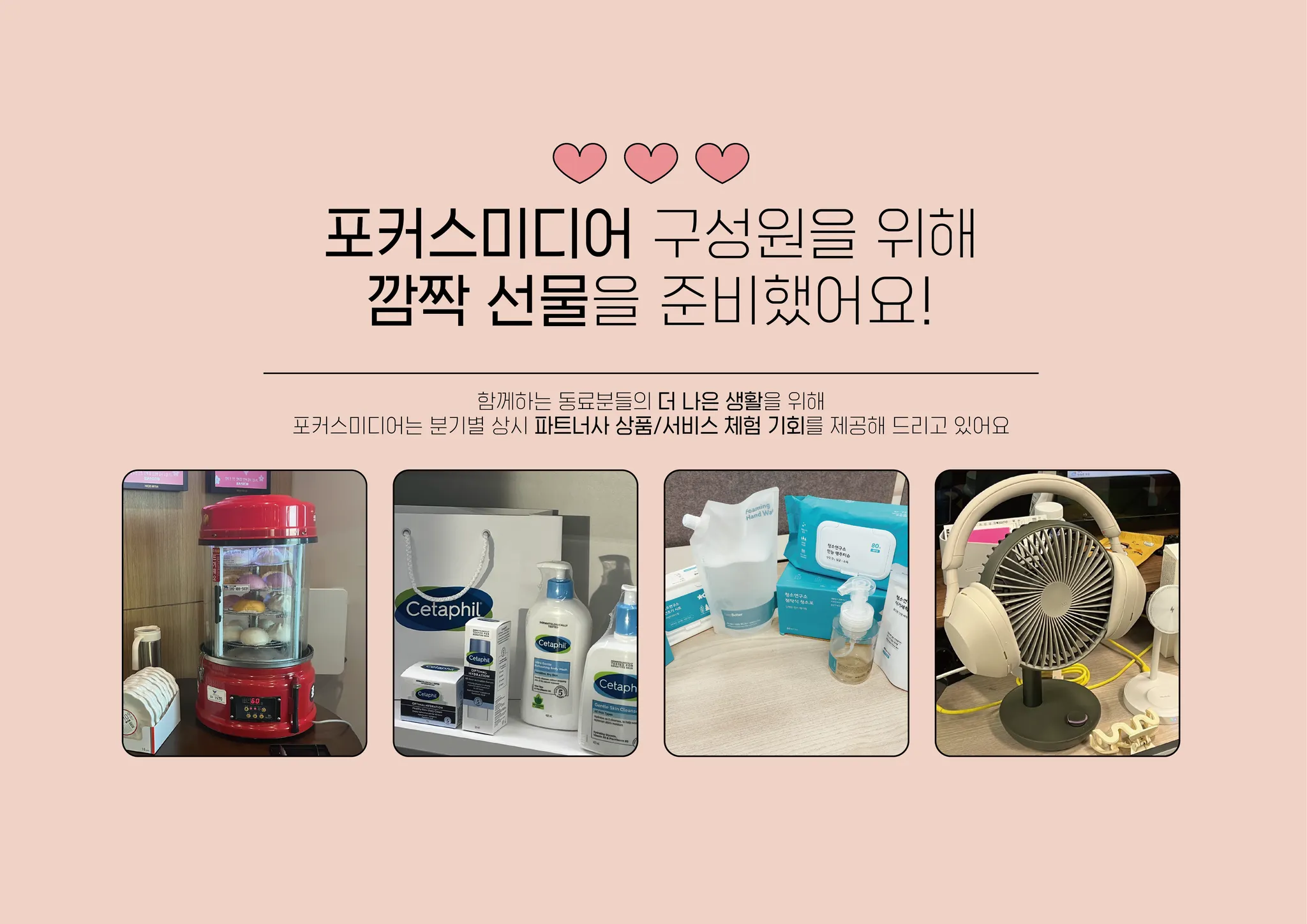 “포커스미디어는 동료의 성장, 발전을 위하여 함께 고민하고 그에 필요한 인적/물적 자원을 아낌없이 지원하고자 합니다.”