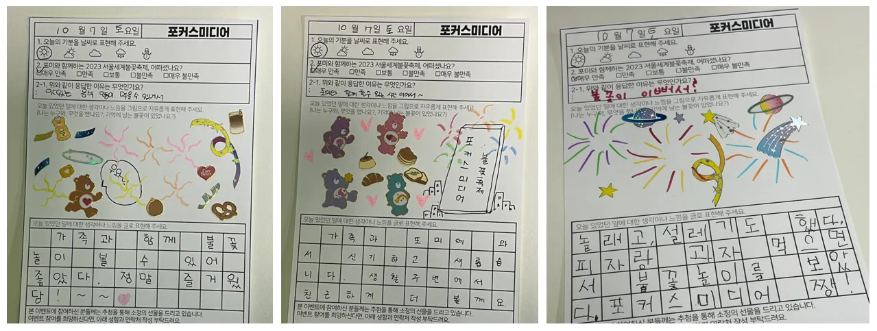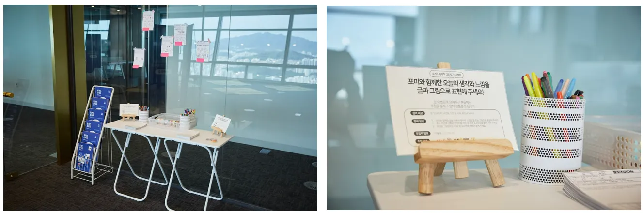 또한, 작년과 달리 올해에는 누구나 참여할 수 있는 ‘포미와 함께하는 그림일기’ 이벤트도 준비했어요. 이벤트 참여 방법은 오늘의 생각과 느낌을 글과 그림으로 자유롭게 표현하면 되는 것으로 아주 간단했답니다.