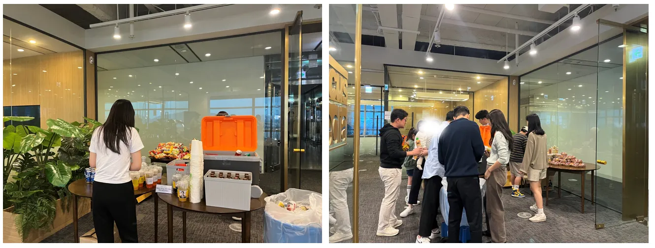 행사 당일에는 오후 6시부터 사무실 입장이 가능한 것으로 안내됐어요. 우리 동료의 가족, 지인들을 처음 맞이하는 것인 만큼 완벽한 공간, 음식 셋팅을 끝내기 위해 컬처&피플그룹은 조금 더 부지런히 움직였는데요.