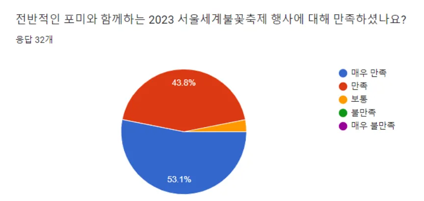 동료분들께서 바쁜 시간 내어 만족도 조사에 참여해 주신 만큼, 컬처&피플그룹도 동료분들의 소중한 목소리에 귀 기울여 다음 행사를 개선할 수 있도록 보다 노력하고자 해요. 그러니, 내년에도 꼭 참석하셔서 저희가 정말 잘하고 있는지 지켜봐 주세요! 그럼, 우리 모두 ‘포미와 함께하는 2024 서울세계불꽃축제’에서 또 만나요.
