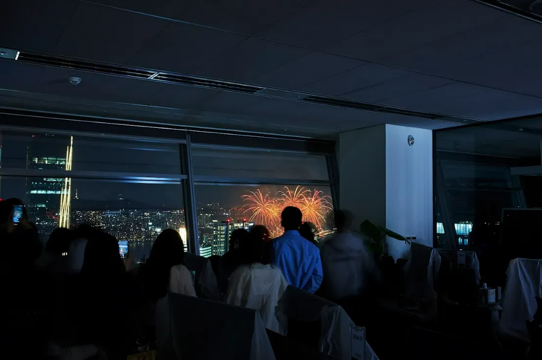 10초 카운트다운과 함께 터진 화려한 불꽃. 사무실은 순식간에 사람들의 “와…”하는 감탄사로 가득 찼어요. 가지각색의 불꽃이 하늘에 수놓는 모습을 반드시 눈에 모두 담아야만 했죠.
