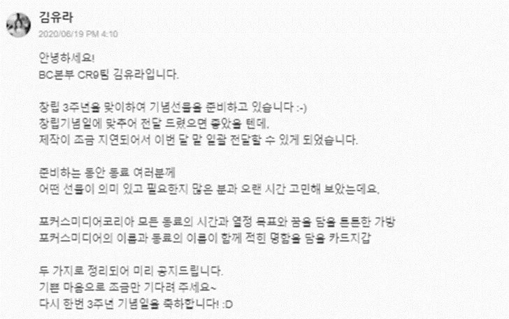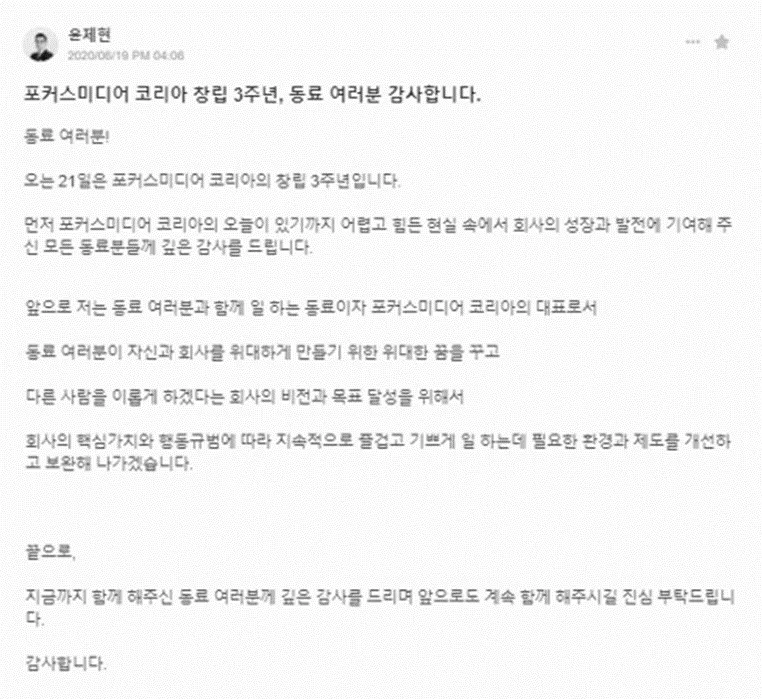 어렵고 힘든 현실 속에서 회사의 성장과 발전에 기여해 주신 모든 동료분들께 다시 한번 깊은 감사의 인사를 드립니다. 그리고 생일 축하해, 포미.