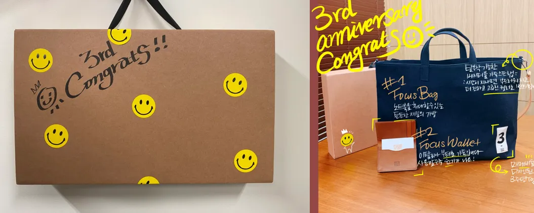 포미의 창립 3주년을 기념할 만한 굿즈가 빠질 수 없죠. 깊은 고민 끝에 탄생한 포미 굿즈, 함께 살펴보아요.