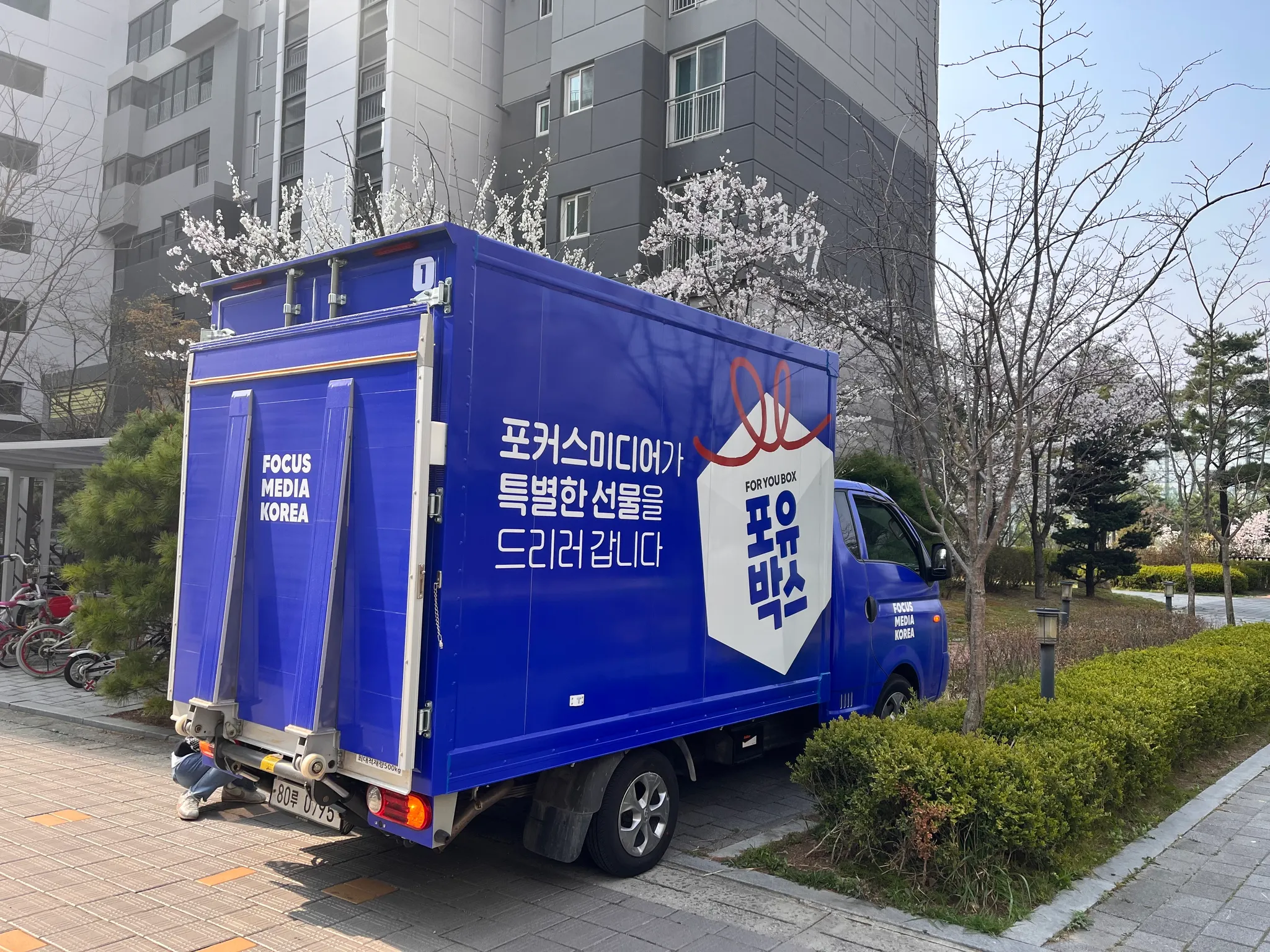 드디어 오늘 포미데이가 운영될 예정인데요. 이번 포미데이가 진행될 곳은 완연한 봄을 맞이하여 벚꽃이 잔뜩 개화하고 있는 서울시 중랑구에 있는 한 아파트 단지였어요.