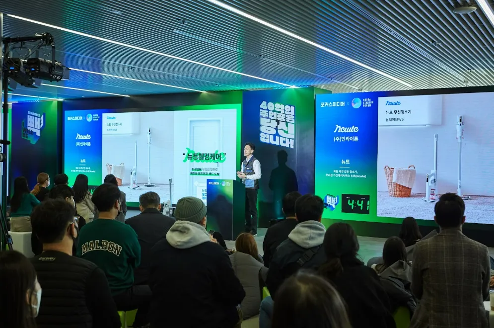 첫 번째로 피칭을 시작하는 회사는 청소기 판매 & 먼지통, 헤드 구독 서비스를 운영하는 ‘뉴트’였는데요. 첫 순서임에도 불구하고 전혀 긴장하지 않으신 듯한 신기용 대표님이 나오셔서 운영 중인 사업에 대해 자세히 설명해 주셨어요.