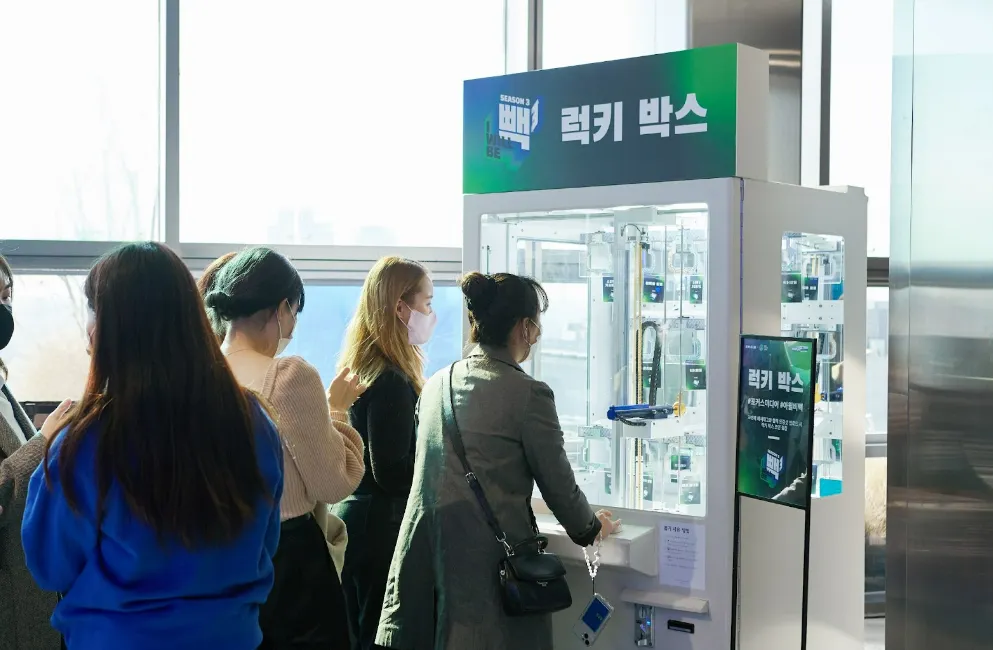 운영하는 부스들 중 줄이 제일 길고 시끄러웠던 곳이 아니었을까 싶었던, 럭키 박스. 피칭데이를 즐기고 있는 모습을 사진으로 찍어 SNS에 업로드하거나 포커스미디어 카카오톡 채널을 추가하면 동전을 하나씩 받을 수 있었는데요.