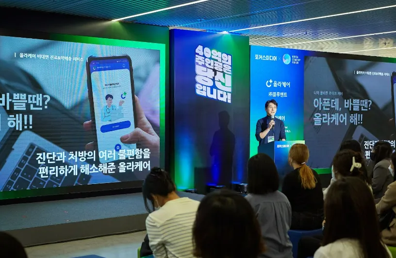 그다음으로 생활습관 질환관리 서비스 ‘올라케어’, 김성현 대표님의 피칭이 이어졌어요.