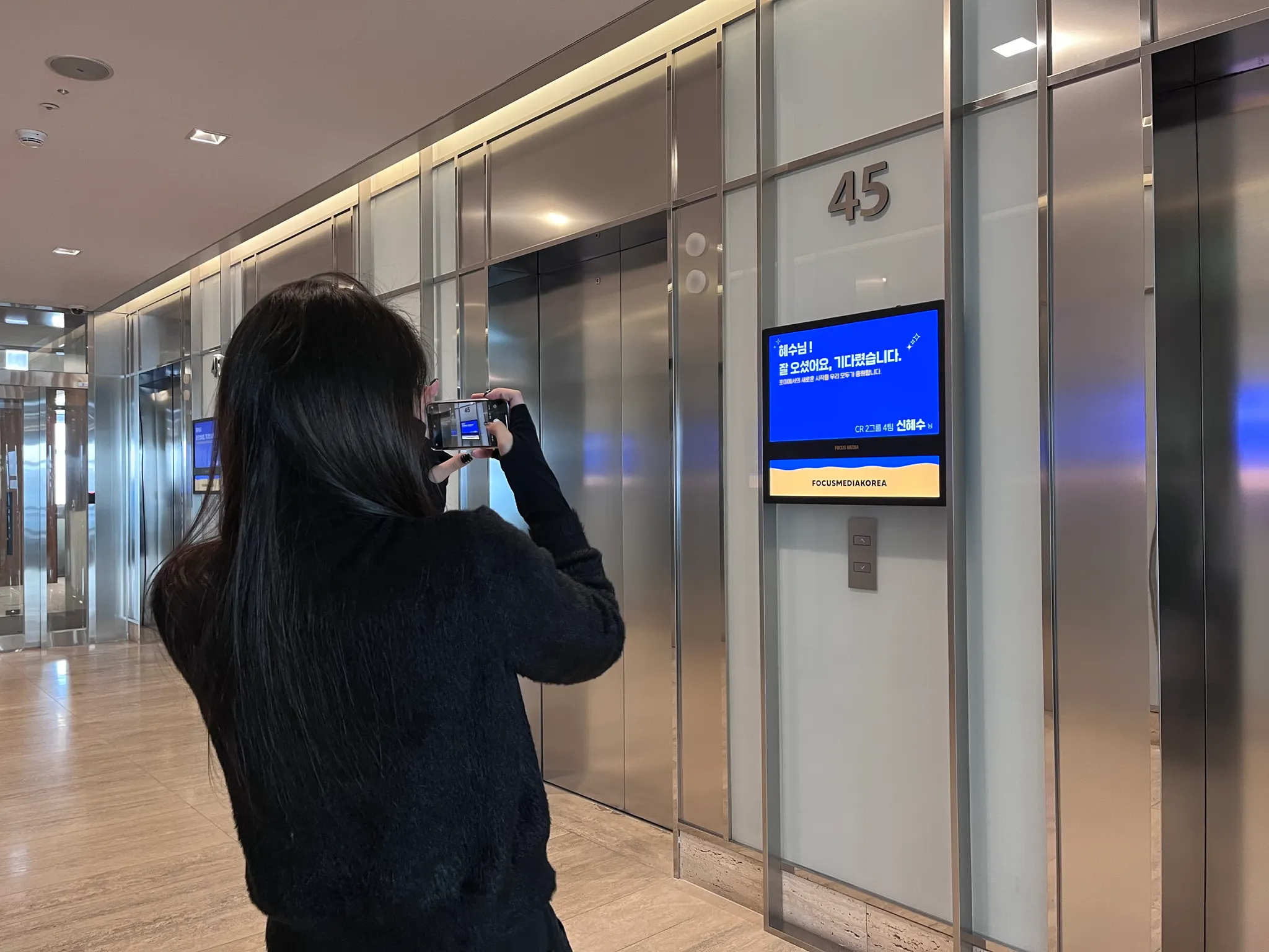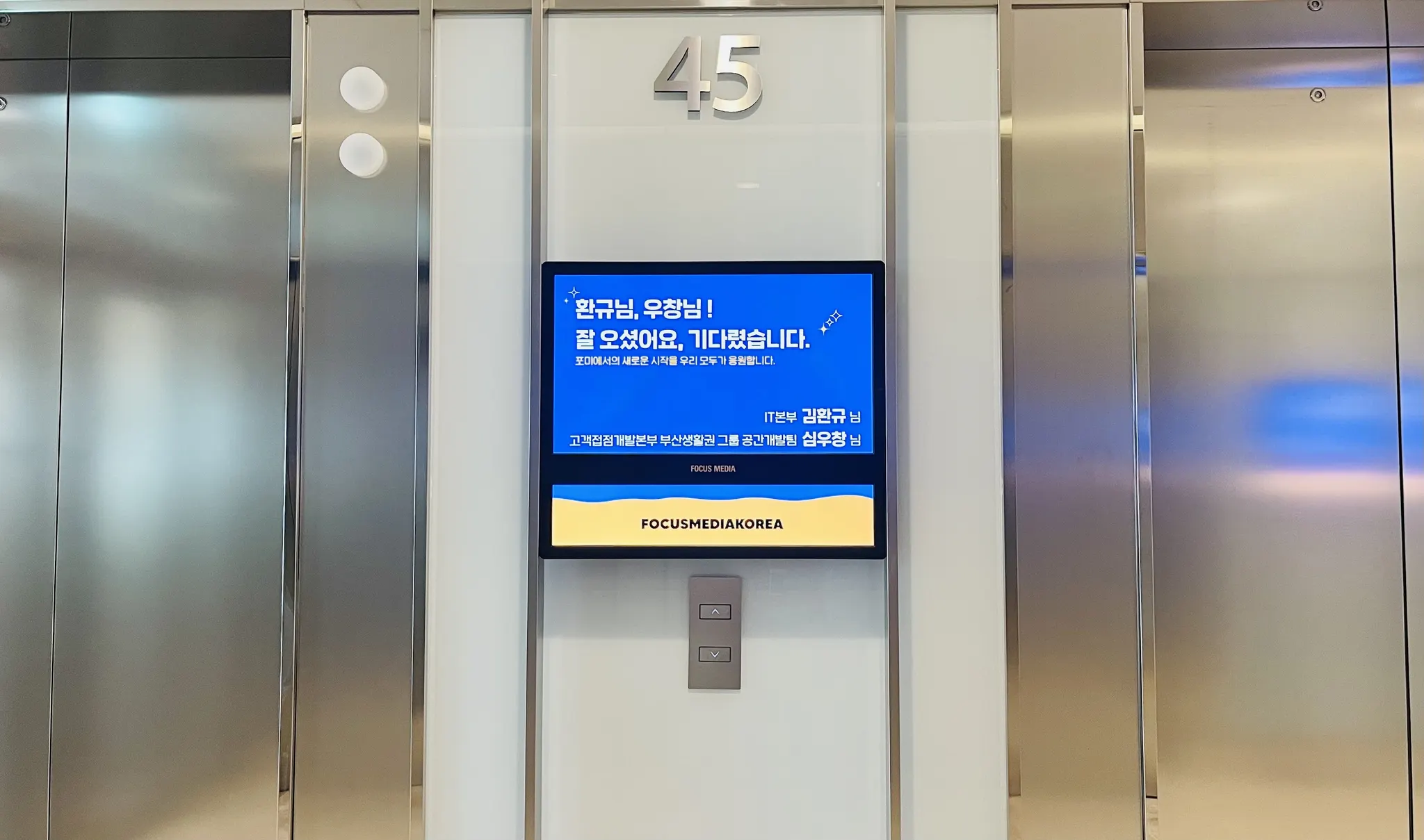 45층 엘리베이터 문이 열리는 그 순간부터 우리는 열렬히 환영합니다.