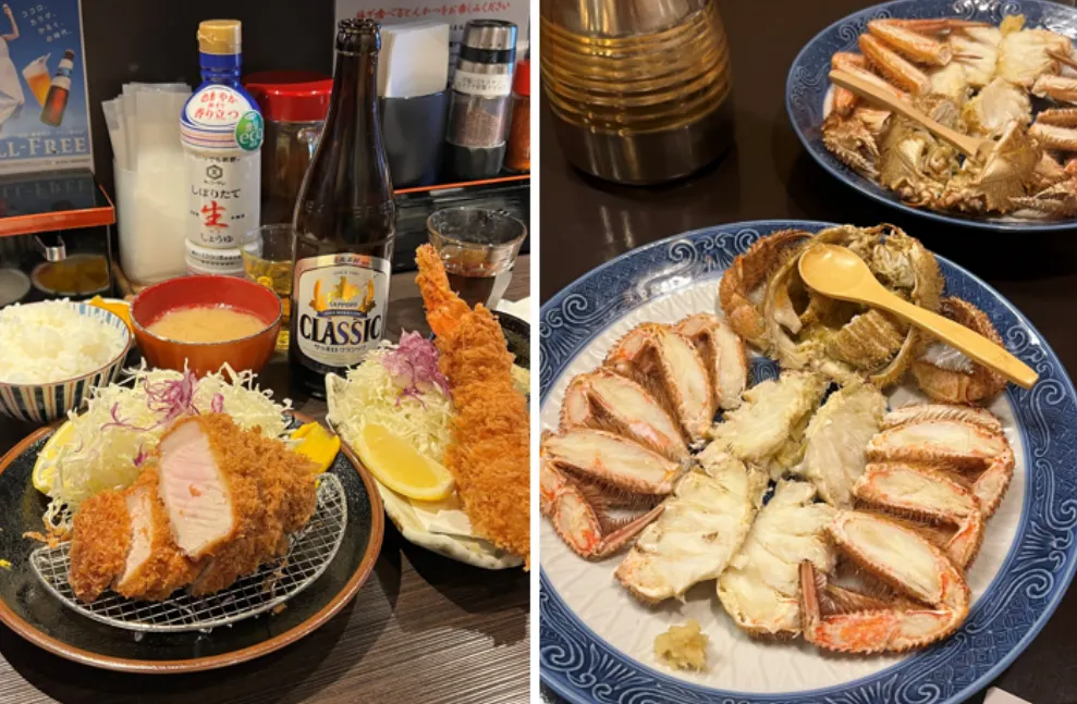 그렇게 오타루에 도착한 첫째날에는 소복이 쌓인 눈을 밟으며 겨울 바다를 보다가 따뜻한 료칸 온천에 언 몸을 녹이며 힐링을 했어요. 그 후에는 일본 전통 료칸에서 가이세키를 먹으며 여유를 즐겼답니다. 둘째 날에는 오타루와 삿포로 지역의 박물관 명소를 돌아다녔어요. 그러다 우연히 들어간 식당에서 스시와 회를 먹었는데 추운 지역이라 그런지 해산물에서 한국과 확연히 다른 신선함을 맛볼 수 있었어요. 셋째 날에는 눈이 많이 내리는 지역, 비에이에 가 크리스마스 트리 앞에서 사진도 찍고 대게도 먹으며 즐겁게 시간을 보내고 왔어요.